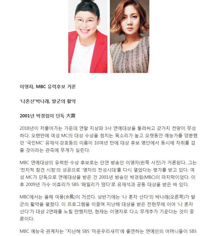 [여시뉴스데스크]유재석·강호동' 빠진 연예대상.. MC, 17년만에 품나 작성자한남충푹찍|작성시간18.12.06|조회수5,723 목록 댓글 52 글자크기 작게가 글자크기 크게가 출처 : https://entertain.v.daum.net/v/20181206105018199 다음검색 현재 게시글 추가 기능 열기 북마크 공유하기 신고 센터로 신고 댓글 댓글 52 댓글쓰기 답글쓰기 댓글 리스트 작성자하고픈거다해 | 작성시간 18.12.06 박나래 받았으면! 작성자한남재기차기 | 작성시간 18.12.06 영자언니 파급력 땜에 유력할듯 작성자햄서터ㅈㄹ | 작성시간 18.12.06 올해 이영자못받으면 못받을거같아ㅠ 작성자배스지 | 작성시간 18.12.06 박나래줘야돼 진짜.. 안되면 둘다 줘ㅜㅜㅜ 작성자G.고릴라 | 작성시간 18.12.06 공동수상은 싫은데..둘다 이번 아님 못받을꺼 같아서 걍공동수상 했음 ㅠ 댓글 전체보기