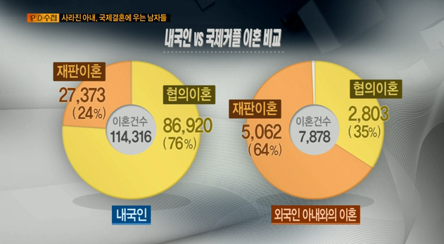 게다가 내국인 커플들은 협의이혼이 80% 인 반면