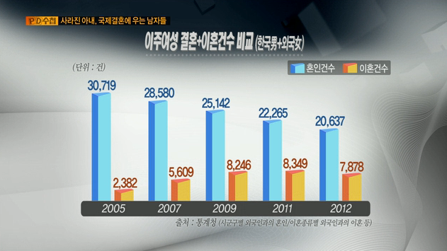 해마다 한국男과 외국女 혼인율은 점점 떨어지는데