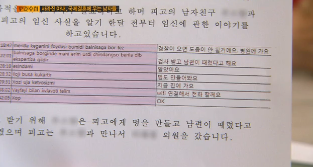 우즈벡 남자친구와 메신저에서 한국에 오래있을 생각이 없다한 우즈벡 여성