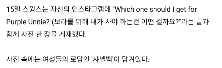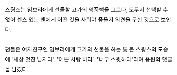 [여시뉴스데스크]여친 임보라에 명품 '샤넬백' 공개적으로 사주는 사랑꾼 스윙스 작성자갈비만두.|작성시간18.12.15|조회수376,033 목록 댓글 275 글자크기 작게가 글자크기 크게가 출처 :https://m.insight.co.kr/news/198241올 서윙스+인스타 다음검색 현재 게시글 추가 기능 열기 북마크 공유하기 신고 센터로 신고 댓글 댓글 275 댓글쓰기 답글쓰기 댓글 리스트 작성자영앤뤼치 | 작성시간 18.12.27 생색뭐냐 작성자고구마호구마밤구마 | 작성시간 18.12.28 둘다 사줘야지 작성자내 인생 돈길만 걸어 | 작성시간 18.12.28 마 한녀들 아이어택 했으니까 사과의 의미로 하나씩 다 돌리라 ㅠ 작성자으응?응응 | 작성시간 18.12.31 생색좀내고 한남들배워라 작성자2019년에 억대로 성공한다. | 작성시간 19.01.09 은평구 세키.. 학창시절에 못한 영어공부 열심히 하나보네 댓글 전체보기