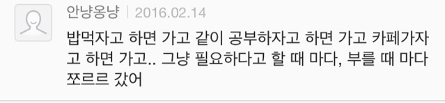 밥먹자고 하면 가고 같이 공부하자고 하면 가고 카페가자고 하면 가고.. 그냥 필요하다고 할 때 마다, 부를 때 마다 쪼르르 갔어