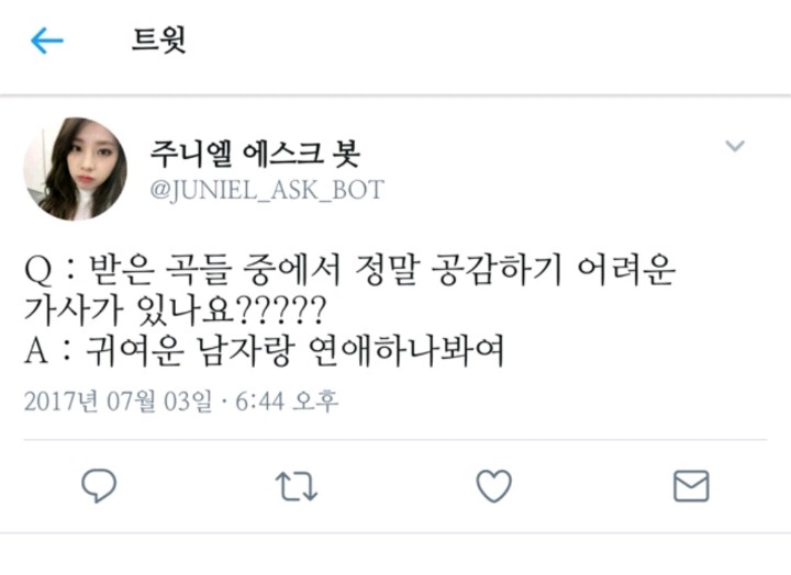 [스크랩] [흥미돋]한남착즙하는 노래 `귀여운남자` 가사의 진실 작성자사혼의여슬조각|작성시간18.12.19|조회수5,475 목록 댓글 19 글자크기 작게가 글자크기 크게가 귀여운남자의 가사는 작은키에 둥근얼굴 뿔테안경 작은눈 통통 파마머리 순진 꼰대..착즙송근데 작사가가 주니엘이아님한성호 찾아봄??띠용?작은키에 둥근얼굴 뿔테안경 작은눈 통통 파마머리..???뮤비에 나오는 컷ㅋㅋㅋㅋㅋ증명사진으로 써도될듯ㅋㅋㅋㅋ소속사 대표라고 이렇게 자기모에화 대리만족해도 되는겁니까..?전형적인 예술하는 한국남자시네요+주니엘 반응 다음검색 스크랩 원문 : *여성시대* 차분한 20대들의 알흠다운 공간 현재 게시글 추가 기능 열기 북마크 공유하기 신고 센터로 신고 댓글 댓글 19 댓글쓰기 답글쓰기 댓글 리스트 작성자울트라 바이올렛 | 작성시간 18.12.19 주니엘ㅋㅋㅋㅋㅋㅋㅋㅋ시원햌ㅋㅋㅋㅋ 작성자여혐은정신병 | 작성시간 18.12.19 갸아아아아아악 개조팔 대표새끼 개미친새ㄱㅣ아냐ㅠㅠㅠㅠ 작성자10억을받았습니다 | 작성시간 18.12.19 저 그림속 3시가 3시방향 한남이라는 소리아니냐고 작성자로아크 | 작성시간 18.12.20 ㅋㅋㅋㅋㅋㅋㅋㅋㅋㅋㅋ아니 가사 존나 빻음 작성자모찌모찌이 | 작성시간 18.12.20 스스로가 한심하지 않나 진짜..? 댓글 전체보기