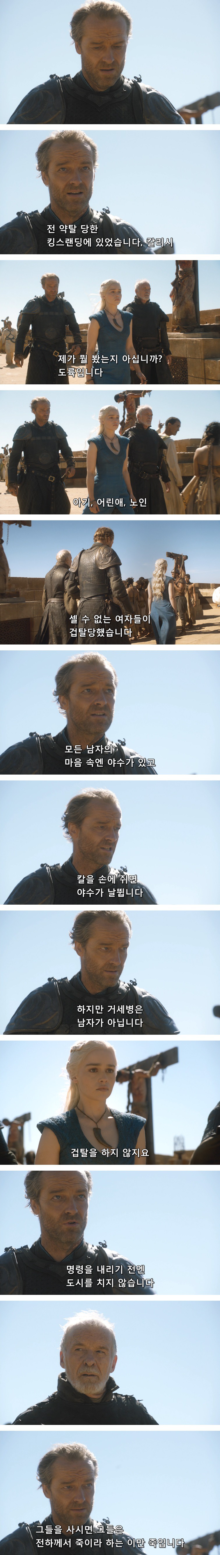 대너리스 : 적들의 피지, 무고한 이의 피가 아니에요.