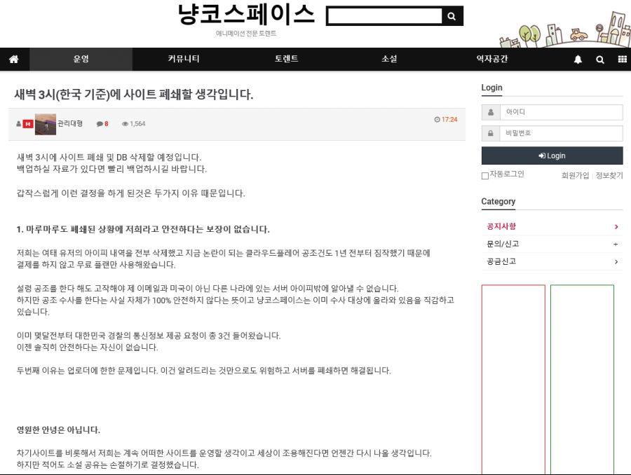 냥코스페이스도 오늘 새벽 3시에 폐쇄할 예정