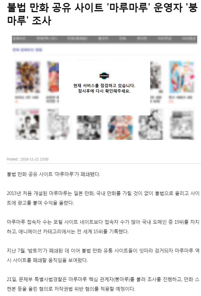 국내 3대 불법 만화 번역 사이트
