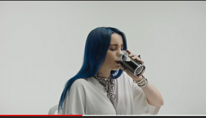 파란머리 사람이 검정물을 들이킴