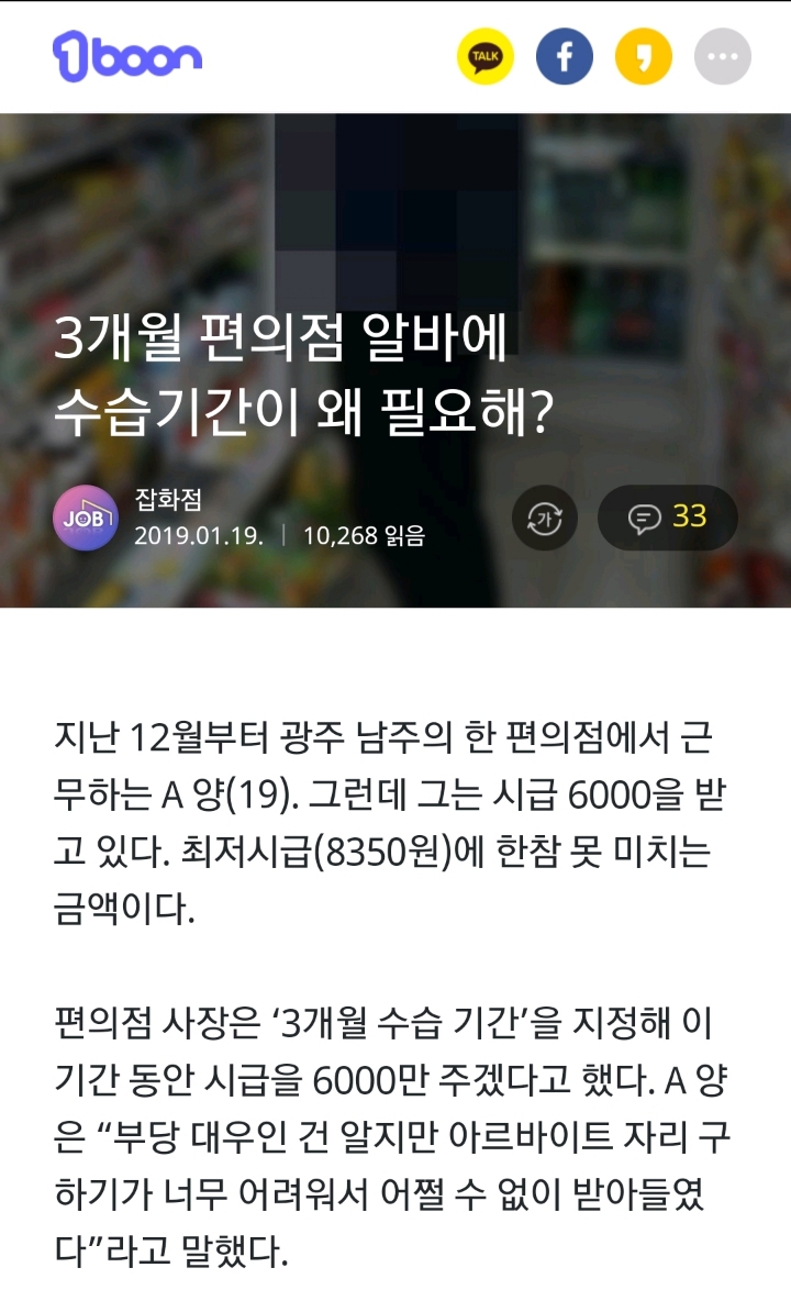 3개월 편의점 알바에 수습기간이 왜 필요해? 1boon.kakao.com
