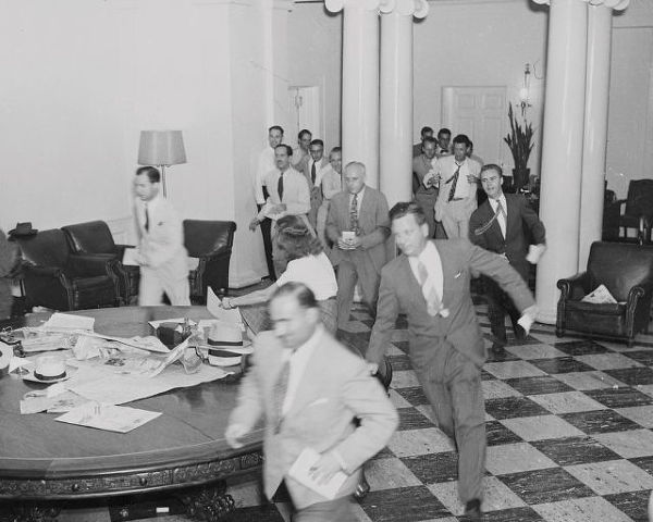 섬나라 항복 소식을 들은 기자들, 1945년 8월 14일.