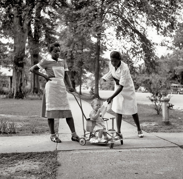 백인 아기 돌보는 흑인 가정부, 1940년 미시시피주.