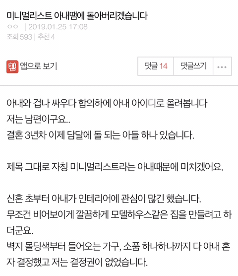 요즘 자칭 미니멀 라이프를 살겠다고 아내가 선언한 이후로