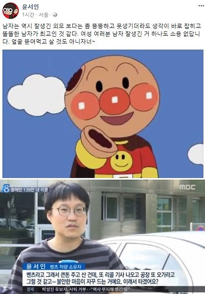 또 다른 유튜브 크리에이터이자 만화가인 윤서인은