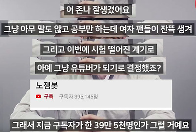 노잼봇은 캠키고 얼굴만 비췄는데 구독자가 40만이 모여서 현타가 왔다며