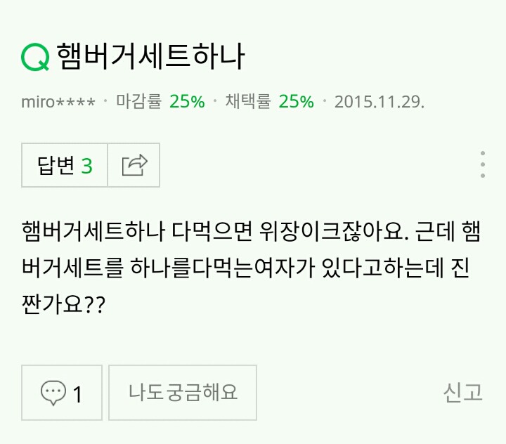 작성자한강에서 재기한 사람 이름이 뭐더라 작성시간 19.02.08 남자도 햄버거 세트 다 먹을 수 있나요??;;; 남자는 관리가 생명인데 세트 다 먹으면 살찌지않나요??;;