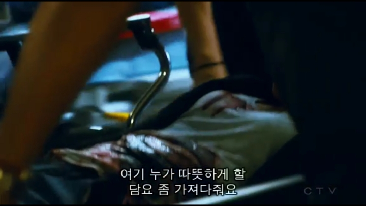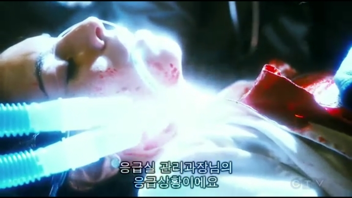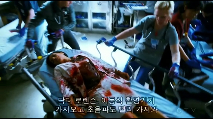 피를 흘린 채로 실려오는 닥터 퍼렐로(=과장=지나)