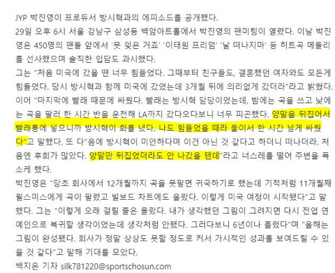 박진영이랑 둘이서 다해먹음 ㅠ
