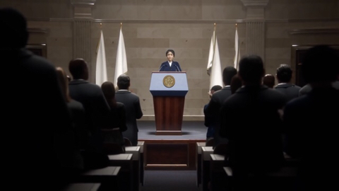 무언가를 선언하고 기립박수를 받는 주인공
