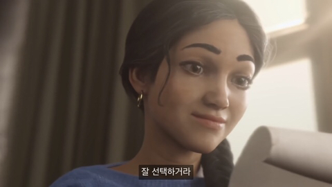 주인공이 잠시 고민하더니 결단을 내린 표정으로