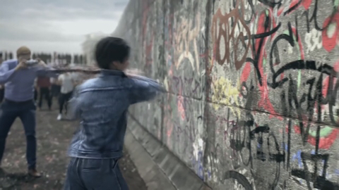 이 도끼로 벽을 뿌셔뿌셔 베를린장벽인듯