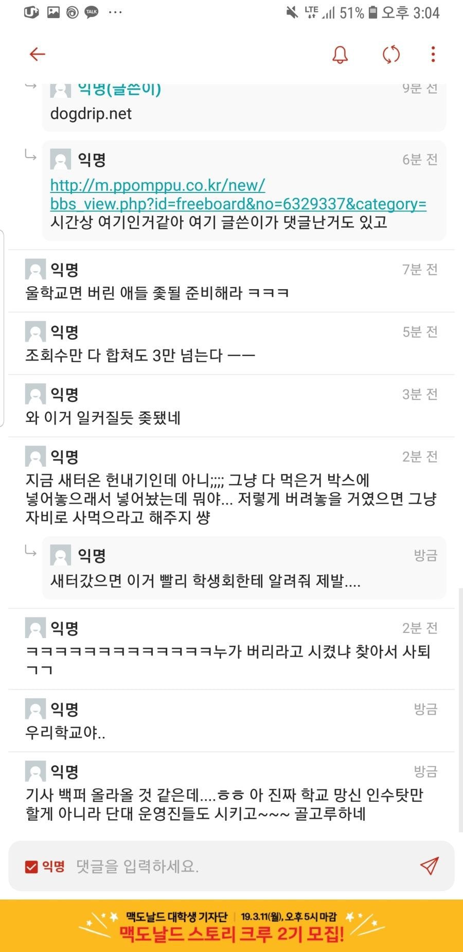 작성자Luckydaye 작성시간 19.03.06 저따위로 대량으로 버리는게 말이야 빵구야 진짜 ㅋ