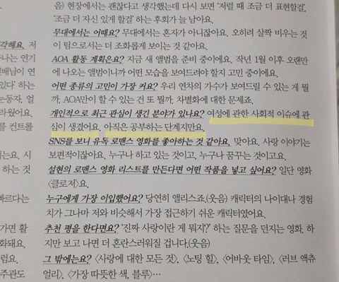 "지금 한국 영화계엔 여자 배우가 뭘 할 수 있을 틈이 없다. 전부 남자 차지다. 최근 몇 년간 더 심해졌다. 남성 카르텔인가 싶을 정도로 몇몇 배우와 감독이 계속 한국영화를 독식하는 느낌,