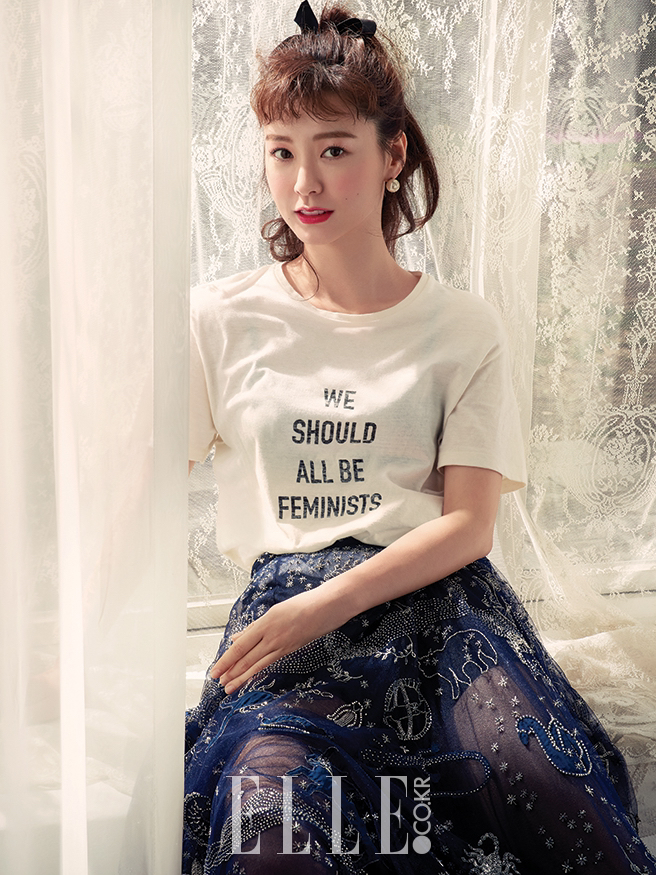 엘르 2017년 6월호 화보에서 착용한 티셔츠 역시 디올의 티셔츠.