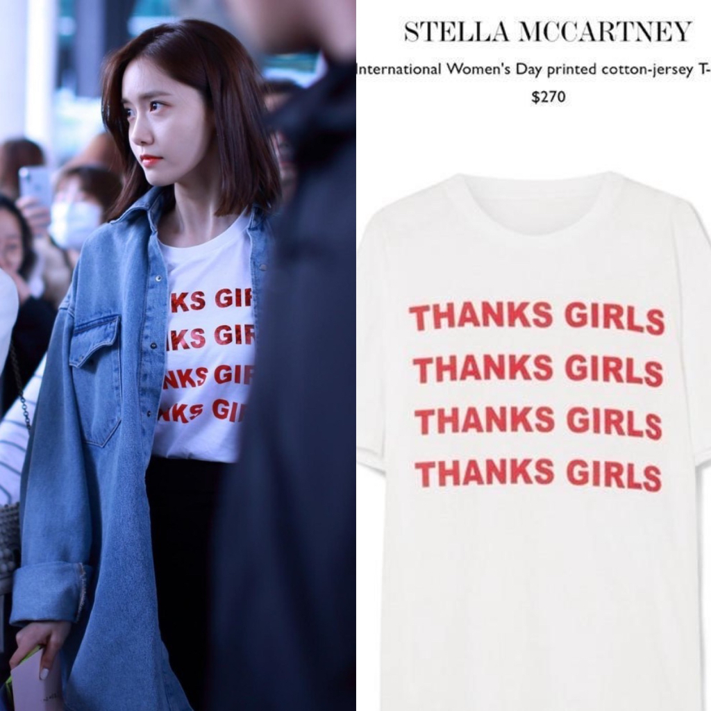 ‘THANKS GIRLS’ 글이 새겨진 옷을 입음
