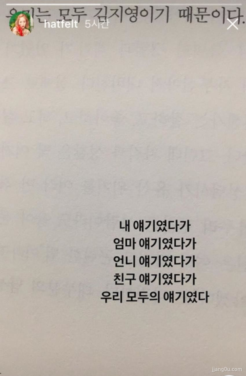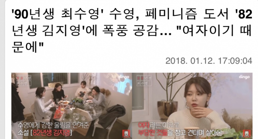 방송에서 베스트셀러인 82년생 김지영을 언급하며 폭풍 공감 했다, 여자라는 이유로 부당한 것을 참고 살아왔다 등의 말을 함