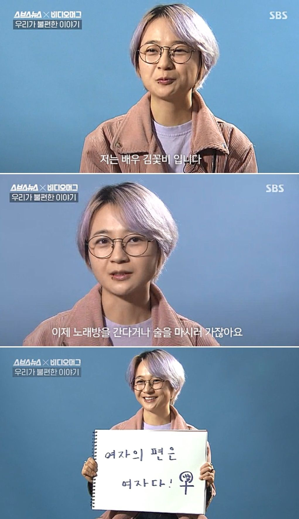 "나는 페미니스타다. 과거 여배우를 배우가 아닌 여자로 본다는 인식을 가지고 있는 남자들이 많았다. 그런 생각을 가진 남자들과 만나서 회식 때 술자리에서 술을 따라줘야 하는 일이 불쾌하다. 마흔 살이 될 때까지 TV에서 자신을 쓰지 않은 이유가 이런 점 때문이다.