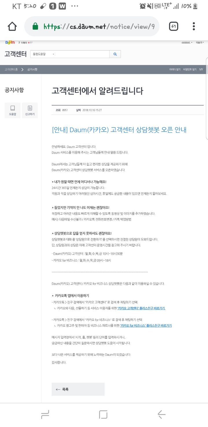 플러스친구후 ★상담원으로 전환해서 항의하기★