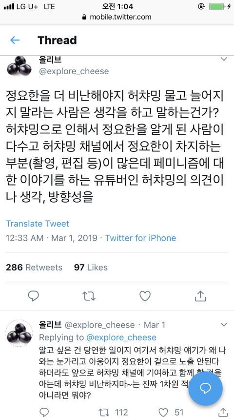 작성자오래가는행복이오기를 작성시간 19.03.28 허챠밍도 그냥 누구여친이 아닌 가해자 인데요