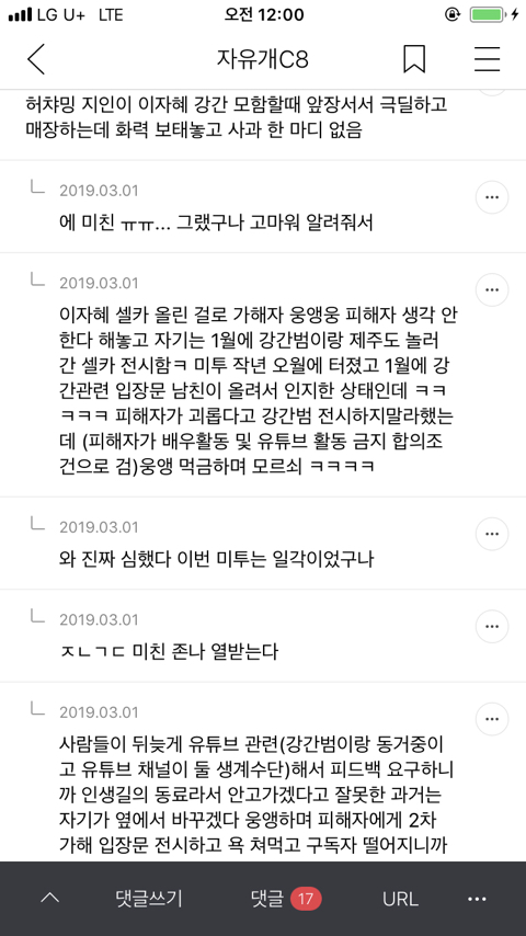 이자혜 성폭행 사주 논란 때 이자혜 극딜하던 사람들 중 하나였던 허챠밍