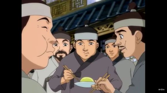새로운 요리를 배우며 즐거워하는 장금이와 연생이