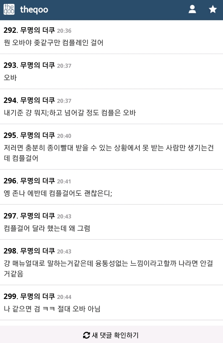 작성자남자혐오 작성시간 19.04.16 네~~ 하고 저런 상황이 기분은 나쁘지만 컴플은 안걸듯