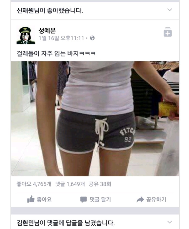 여자가 돌핀바지 입으면 걸레