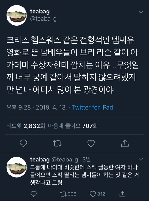 작성자뎀잇 작성시간 19.04.17 토르 개허접새끼가 존나 기어오르네 커리어면에서도 개발리지 않음? 아주 자존심만 오져서 어떻게든 까내리려고 아주ㅉㅉ 역시 남자 아니랄까봐 질투 오지고요