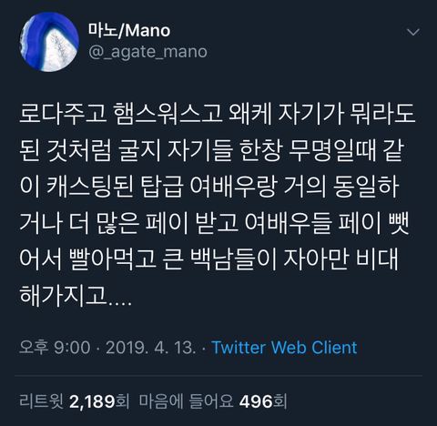 지가 필요할땐 페미 미러링계 남캐로 나오고 여자에게 딸랑거리던 그남
