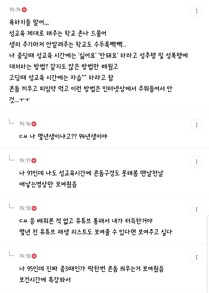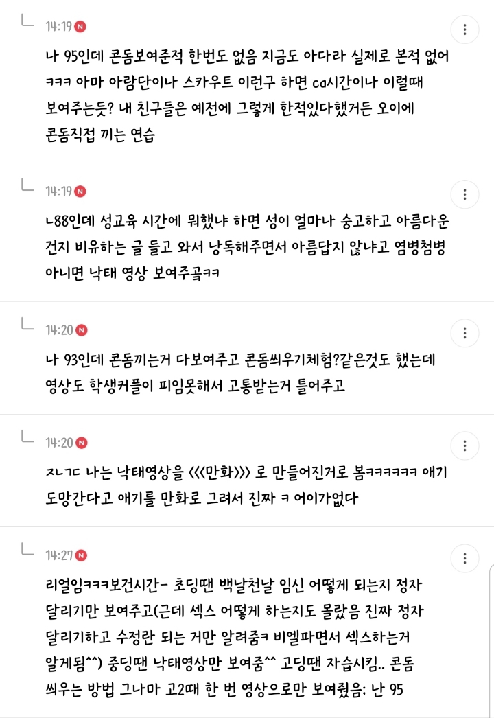 도대체 그 당시에 왜 성교육 제대로 안시켰는지 의문임