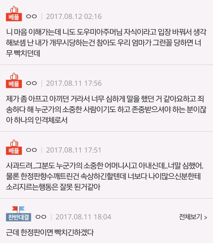 밖에 가정부아주머니도 소리들렸는지 거실나와있으니까 괜히 내 눈치보는거같고