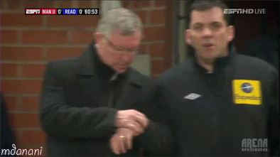 퍼거슨 감독은 팀이 지고있거나 동점인 상황에서 시계를 보고 두드리면서 재촉하는걸로 유명함.