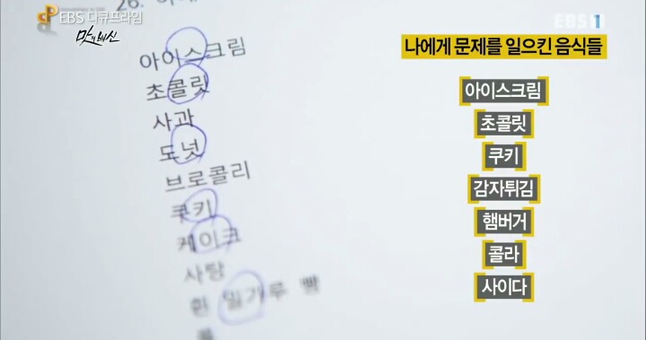대학생 참여자들이 중독으로 많이 꼽은 것은 대부분 가공식품