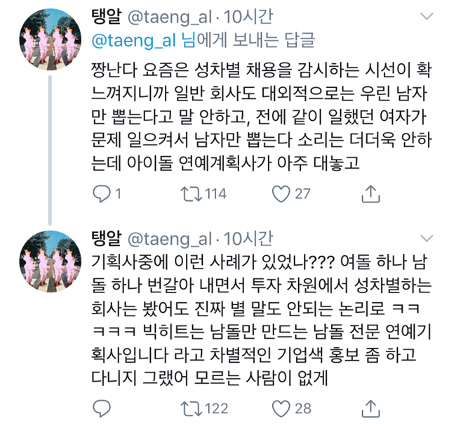 작성자작은아이린 작성시간 19.05.28 ㅋㅋㅋㅋㅋㅋ차라리 난 사업가고 여돌은 돈 안된다고 솔직하게 말을 햌ㅋㅋㅋㅋㅋ 뭘 저걸 쉴드를치냨ㅋㅋ