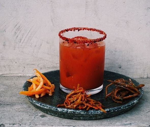 2014년 한국관광공사가 운영하는 영어 홈페이지에는 ‘김치칵테일 레시피’가 올라왔다. 해당 게시물에는 김치칵테일을 ‘김치블러디메리’라 불렀다. 블러디메리는 보드카와 토마토 주스를 섞어 만드는 칵테일이다. 김치블러디메리엔 보드카 대신 소주와 김치 국물을 넣는다. 유리잔 안에 다진 마늘을 넣고 소주 2온스를 넣은 뒤 김치 국물과 토마토주스, 얼음을 부어 김치로 장식해 마신다.