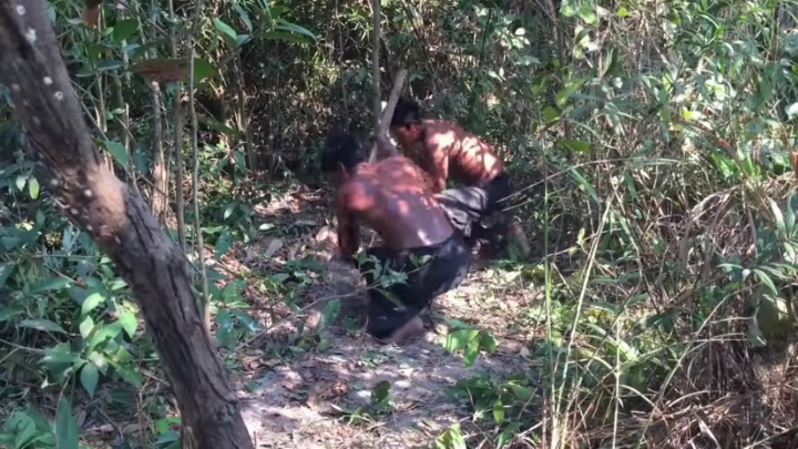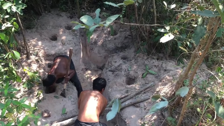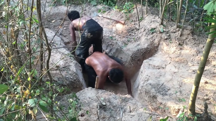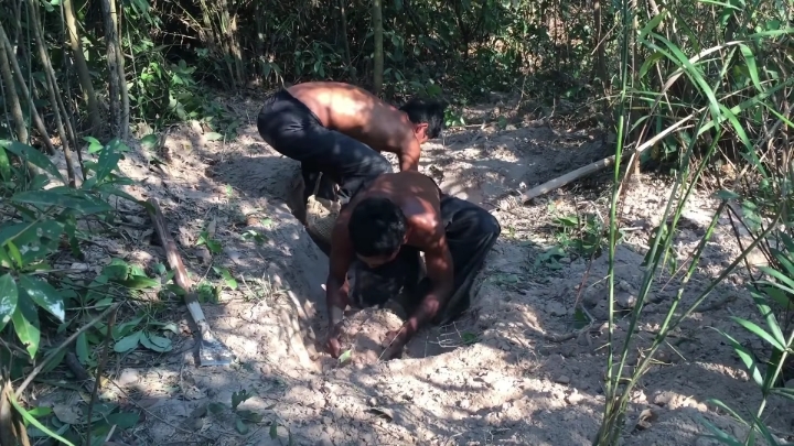 손+나무막대기로 땅 존나 파기