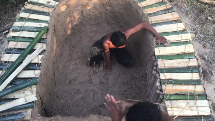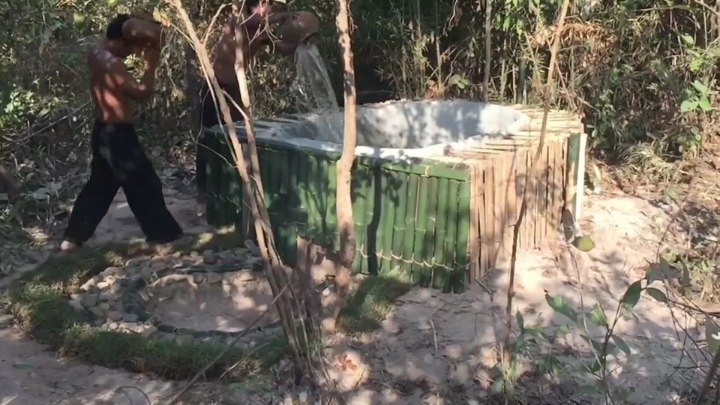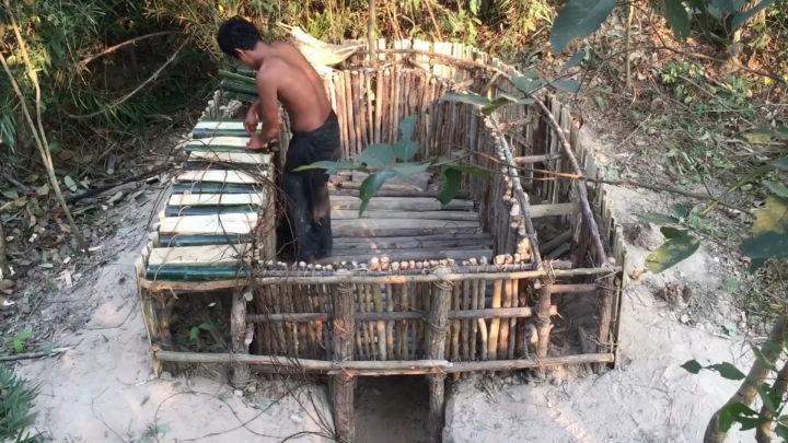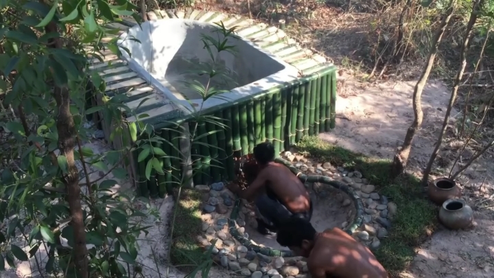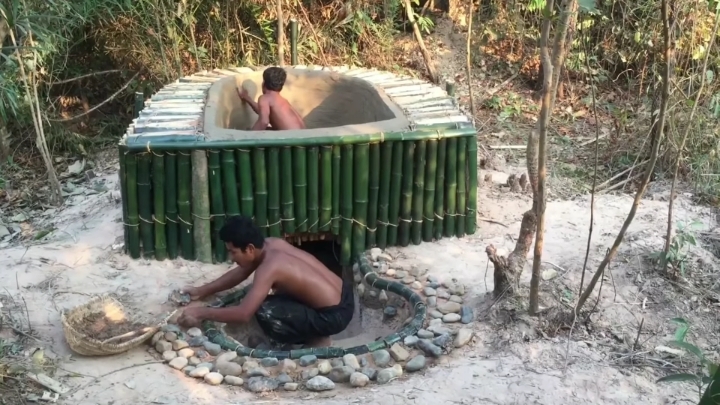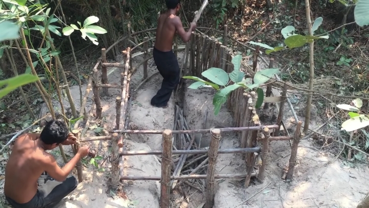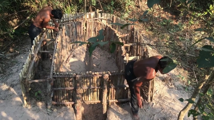 바깥쪽도 대나무로 벽 세우는 중