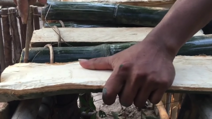 옆면에 나무 하나하나 박아서 벽 만듦
