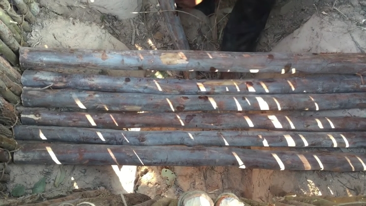 땅 판 곳 옆쪽에 구멍 뚫어서 기둥 세움