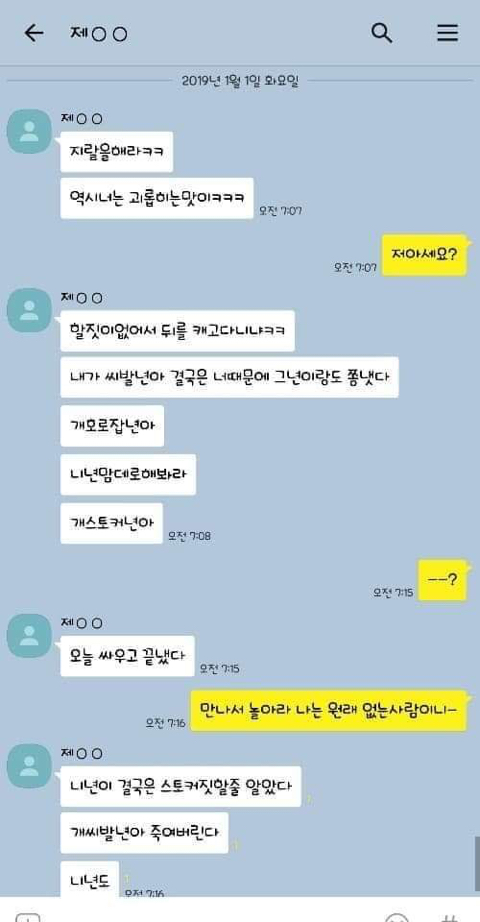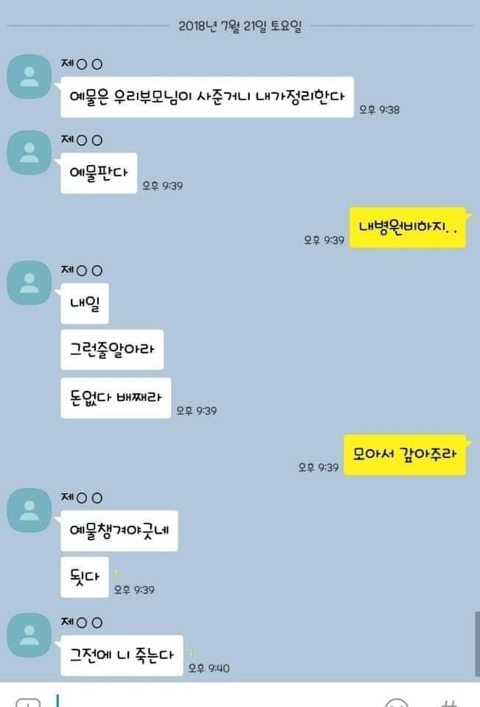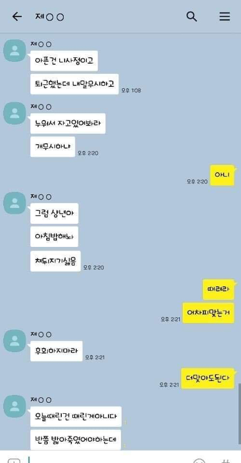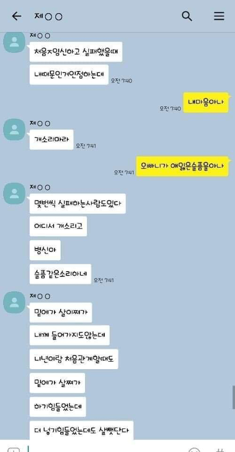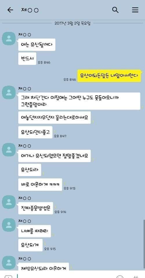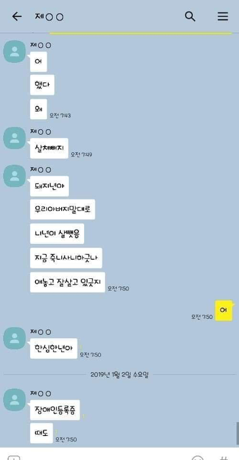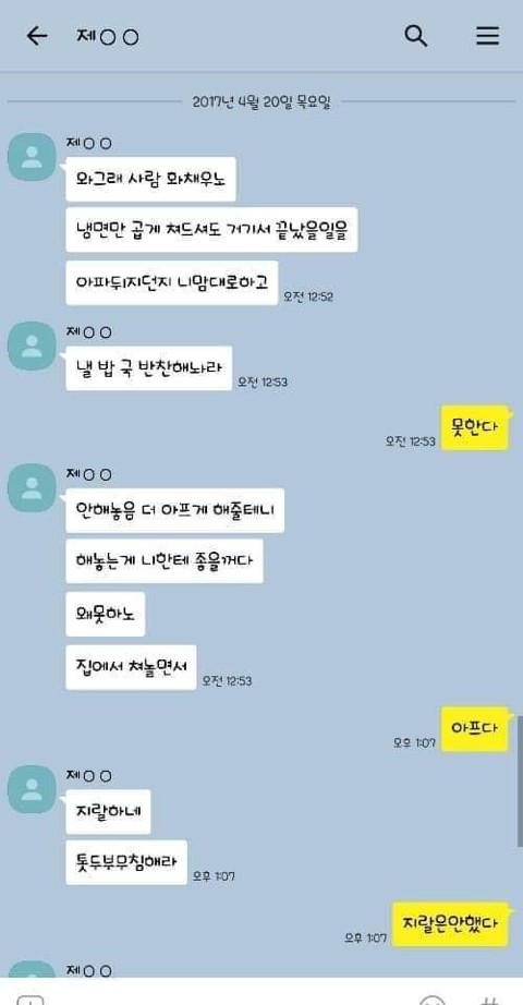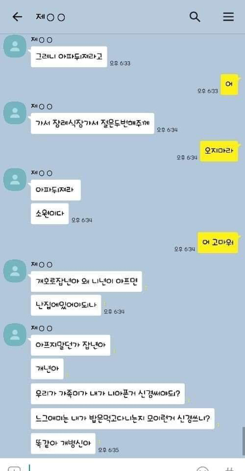 작성자엄마,쟤흙먹어 작성시간 19.06.21 손발톱 하나씩 다 뽑고 몸 전체를 회떠서 사형시켜야한다 저게 사람새끼냐? 카톡으로 저 정도면 실제 면대 면으론 어땠겠어 소름돋고 무섭다 진짜