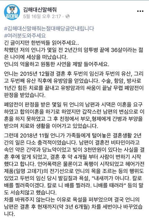 작성자gksskaworlgo 작성시간 19.06.21 제발 청원하자ㅠㅠ이거 재청원이잖아 이번엔 꼭 20만 넘기자...