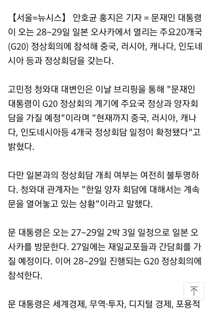 [여시뉴스데스크]文대통령, G20 회의서 중·러와 정상회담…한일회담은 미정 작성자박술녀 한복|작성시간19.06.21|조회수820 목록 댓글 3 글자크기 작게가 글자크기 크게가 출처 :https://n.news.naver.com/article/003/0009299896 다음검색 현재 게시글 추가 기능 열기 북마크 공유하기 신고 센터로 신고 댓글 댓글 3 댓글쓰기 답글쓰기 댓글 리스트 작성자POODLE | 작성시간 19.06.21 하고싶으면 지들이 하자고 하것지 ㅋㅋㅋ 작성자save me . | 작성시간 19.06.21 쟈팬패씨이이잉 작성자이민호(1987.06.22) | 작성시간 19.06.21 왜국패싱 댓글 전체보기